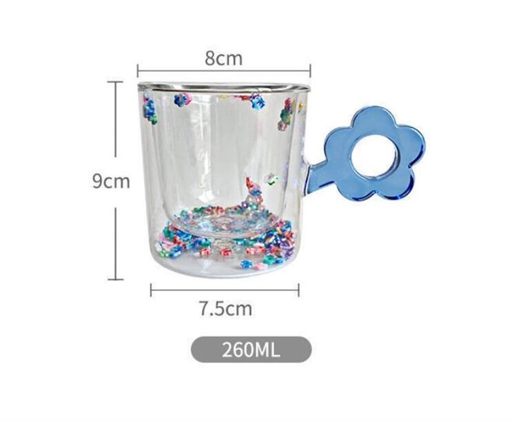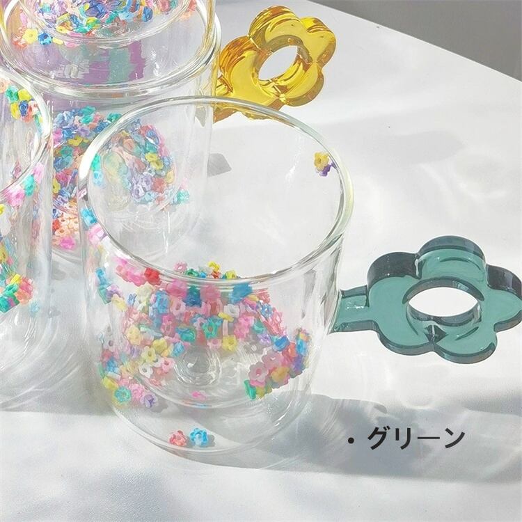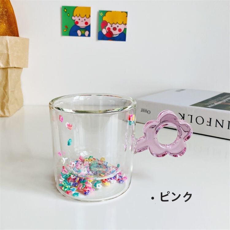 二重断熱機能付き透明カップ 花とハートのサンドデザイン ミルク・ジュース・コーヒー対応 5色 260ml N2JY2025112901 :dodo