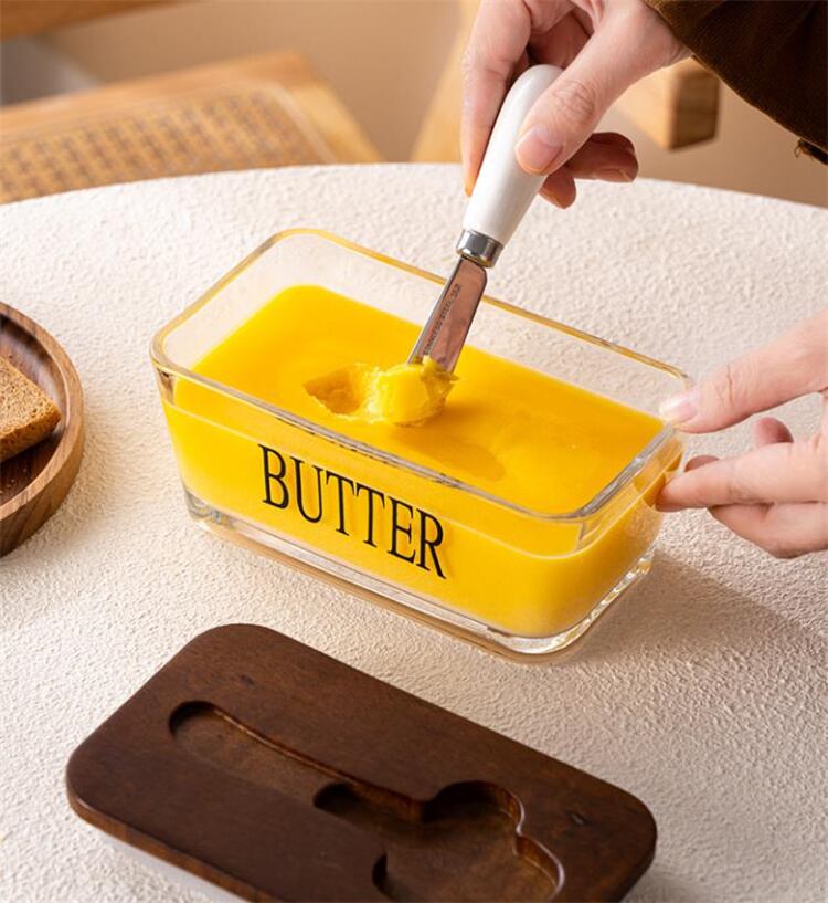 長方形ガラス保存缶 バター用密封容器 付属スパチュラ&蓋付き チーズ保管にも対応 ホームキッチン向け N2JY2025112107 :dodo