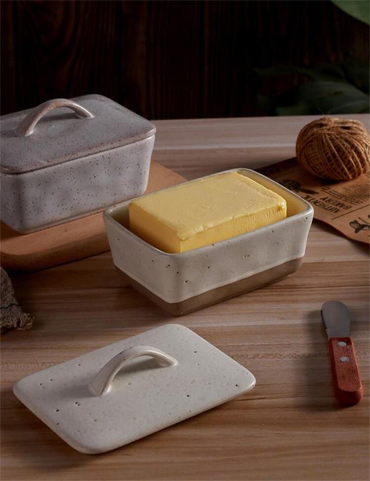 350ML四角形バター容器 蓋付き 2026新作 窯変釉レトロ陶磁器 キッチン収納 食品保存 釉薬の美しい色調変化 N2JY2025112105 :dodo