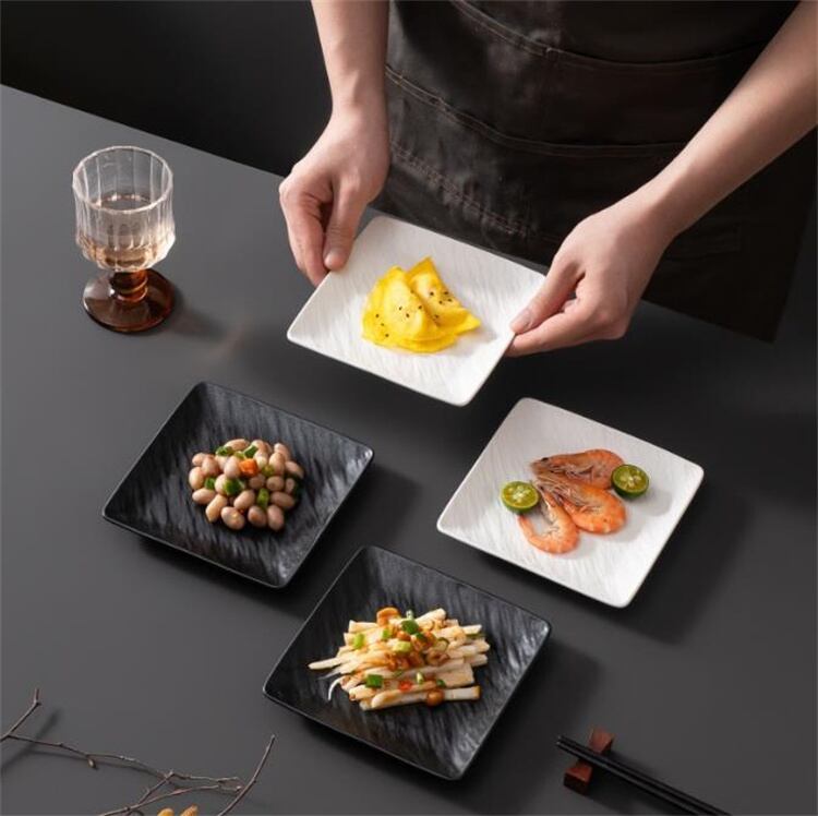 四角形岩石模様陶器皿 セット商品 前菜・小料理用 お菓子盛り皿 冷菜プレート 正方形軽量食器 N2JY2025111710 :dodo
