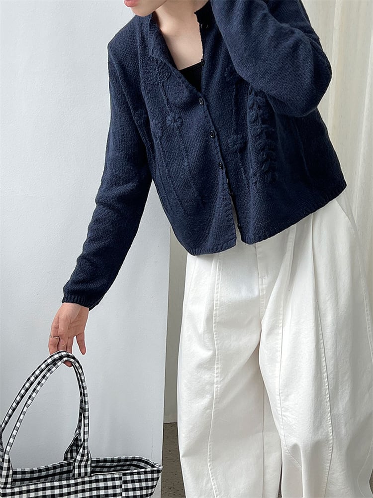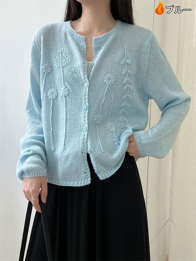 レース風刺繍アクセントウールカーーディガン2025秋優雅なムードを演出