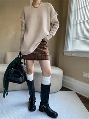 ハンドメイドステッチで繊細な肌触り丸襟ゆったりリラックス風秋冬ニットトップス長袖セーター3色展開 N2JY2025112801 :dodo