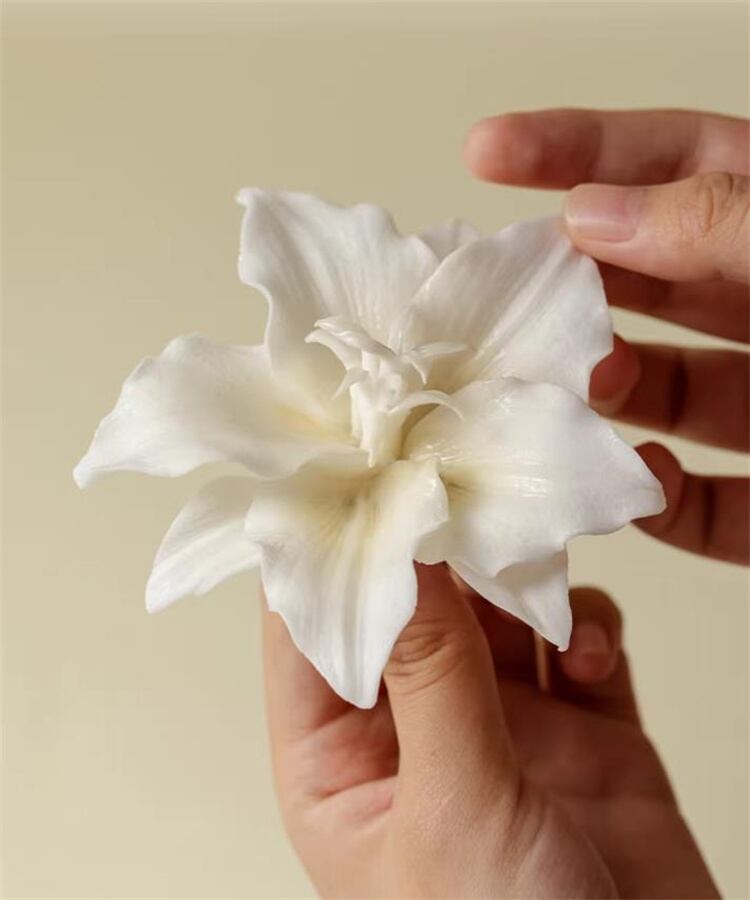 一輪一輪、指先で丁寧に成形された百合の香炉。