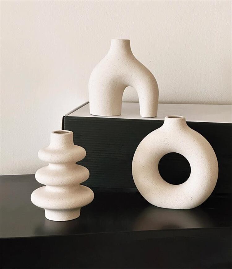 風化したような風合いのボヘミアン風フラワーベース3種セット 幾何学形状の素焼き陶器が N2JY2025121704 :dodo
