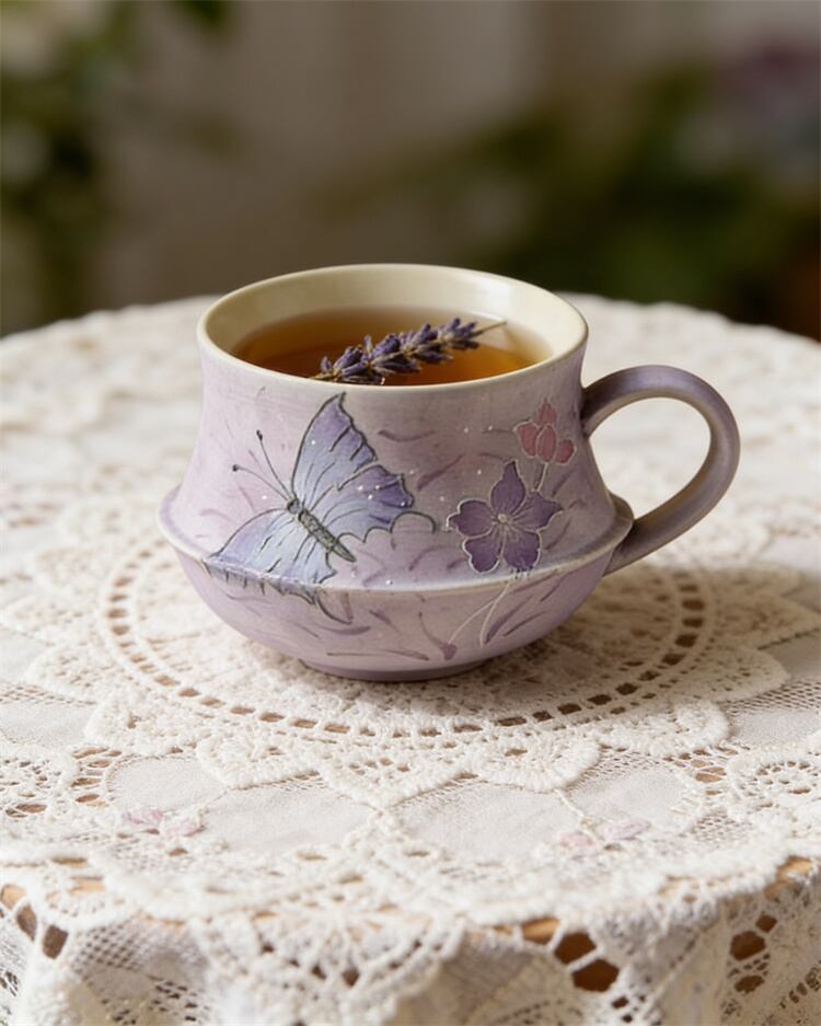 オフィスのデスクに置けば、上品なパープルが周りから「素敵ですね!」と声をかけられること間違いなし; 午後の紅茶タイムには、蝶々の模様がゆらめく光に輝き、小さな贅沢を運んでくれます。