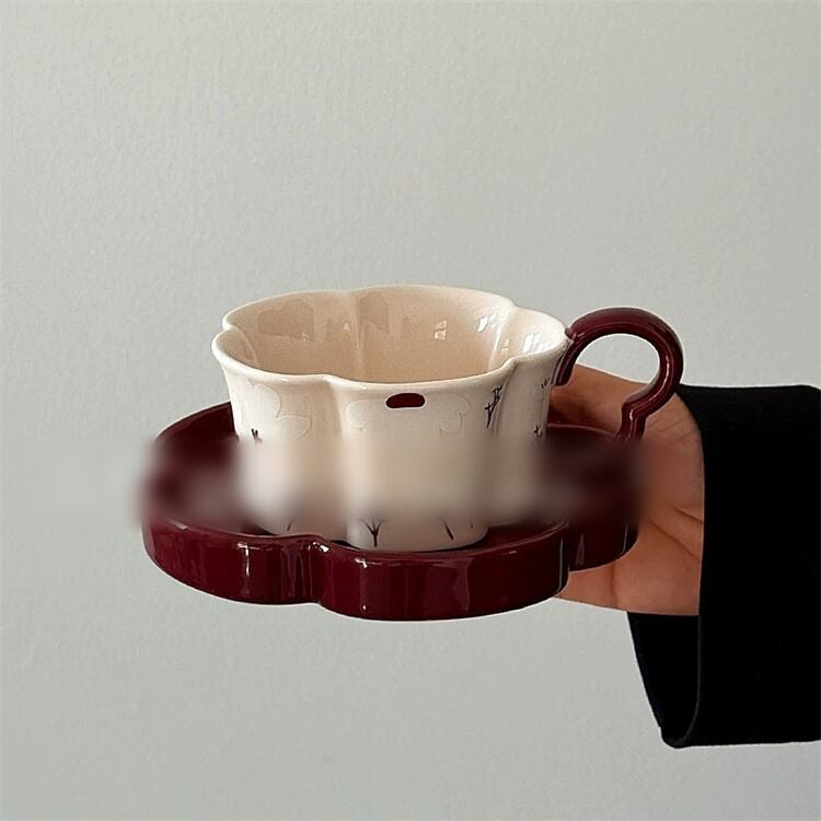 クラシックデザインの陶製カップ&ソーサー ラテやカフェオレに合う250mlサイズ 贈り物にも喜ばれる仕上がり N2JY2025121601 :dodo