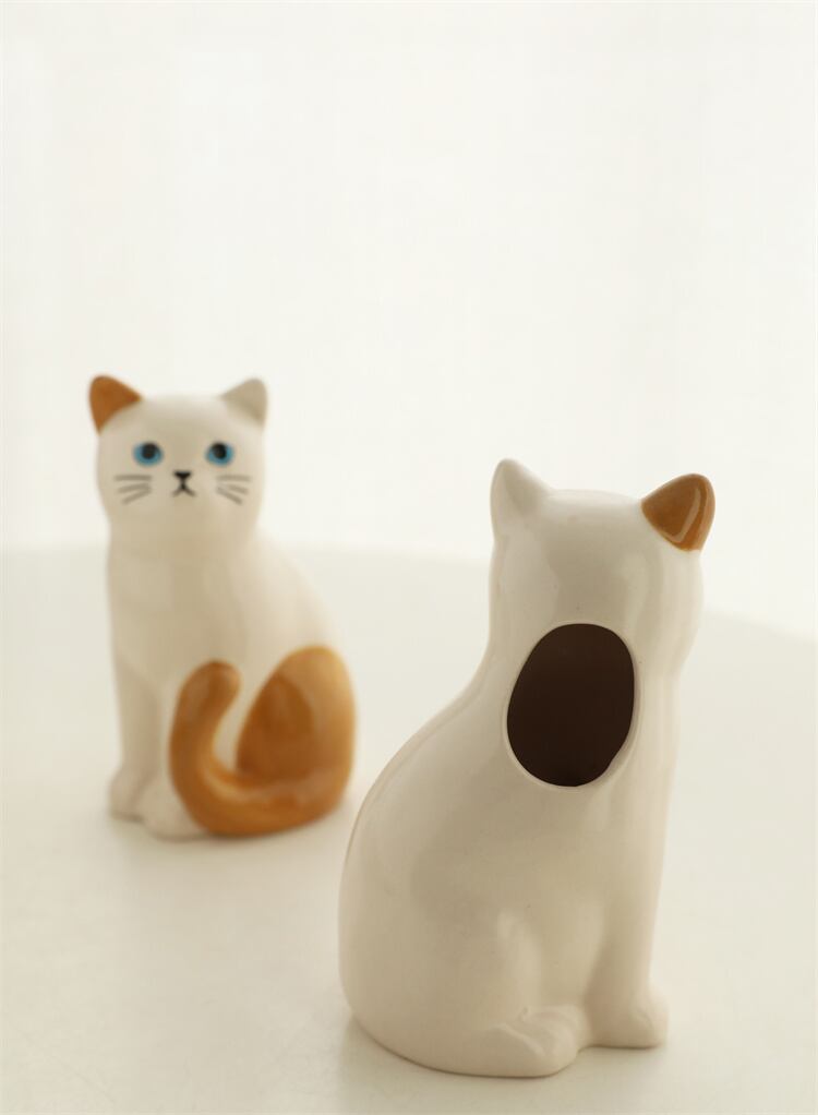 立体感のあるかわいいねこ型陶器 ペン立て・ミニ生け花・カトラリー収納など多彩な使い方ができる N2JY2025123116 :dodo
