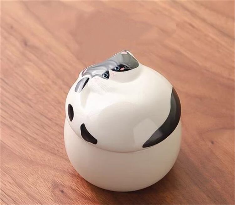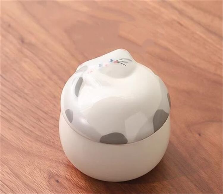 猫の可愛い姿が癒しの陶器茶葉缶 ミニポータブル設計でどこでも使える 密閉保存 220ml収納