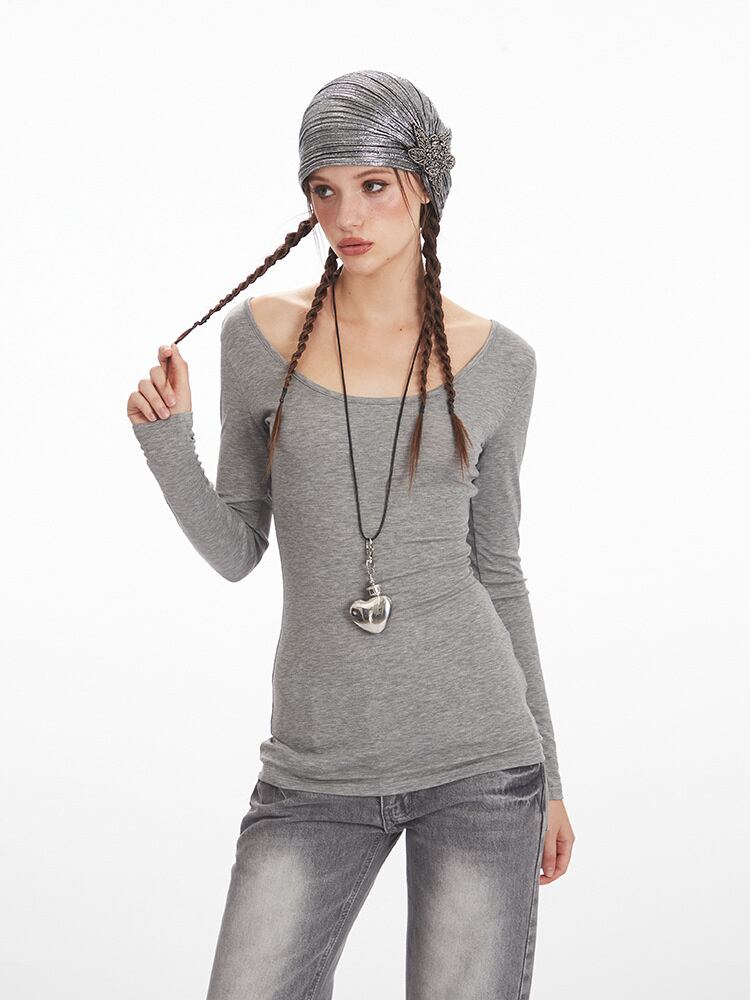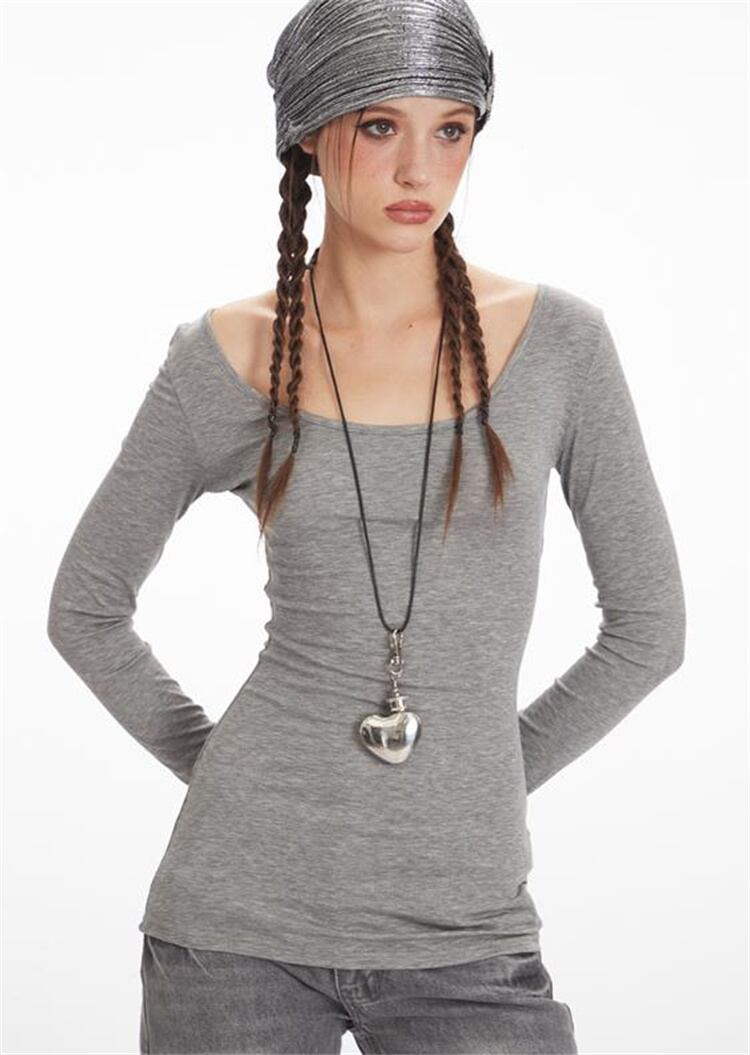 秋のシンプルTシャツ 背中にさりげないレースアクセント フィット感でスタイルアップ