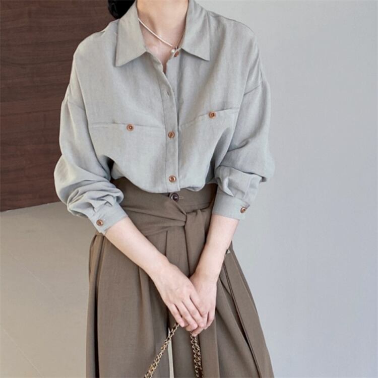 2026新作 レディース長袖シャツ 木製ボタンがポイント カジュアルアッパー 春から夏にかけて着用しやすい N2JY2026022517 :dodo