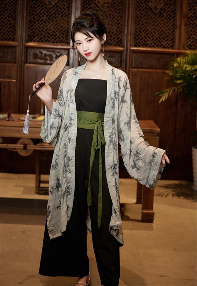ロングカーディガン プリントアウター キャミソール ワイドパンツ 3ピースセット 2026年 春・秋向け
