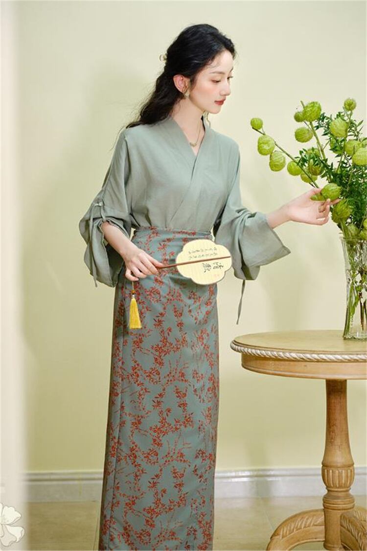 着心地の良い 2026 年モデル セットアップ グリーン Vネック長袖トップス タイトスカート ソフトな雰囲気 N2JY2026022512 :dodo