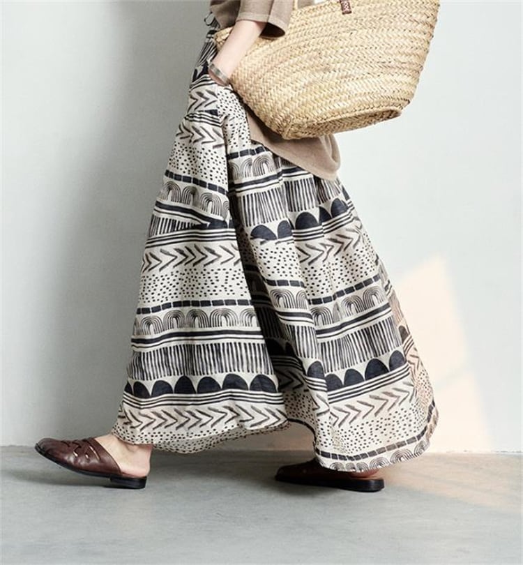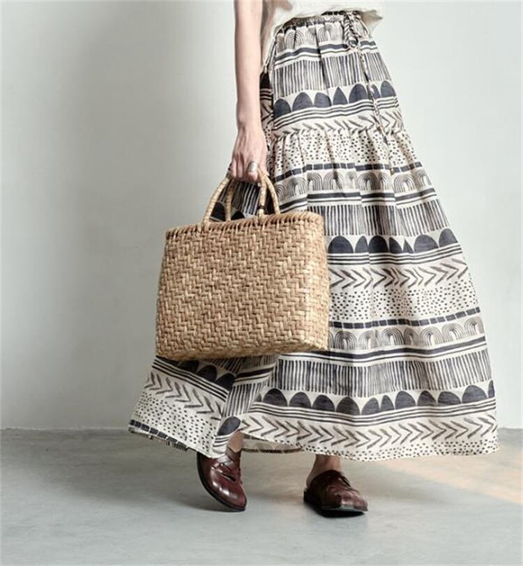 2026年春夏 オリジナル通勤向けミディスカート コットンリネンボヘミアン風 フレアデザイン