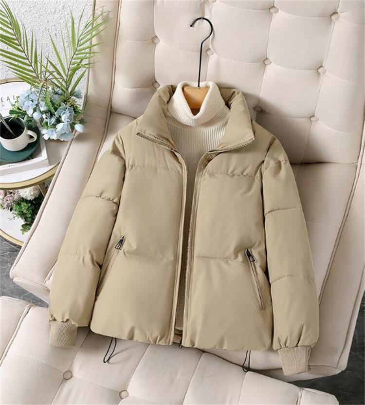通勤風厚手中綿アウター レディースショート丈ルーズスタンドカラーパンコート 秋冬冷え込みに対応