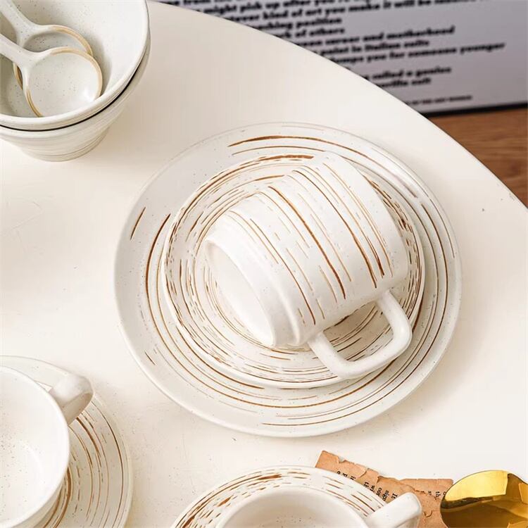 3容量選択可能な取っ手付き陶磁器カップ ワイドマウスデザインで香り広がるコーヒーセット