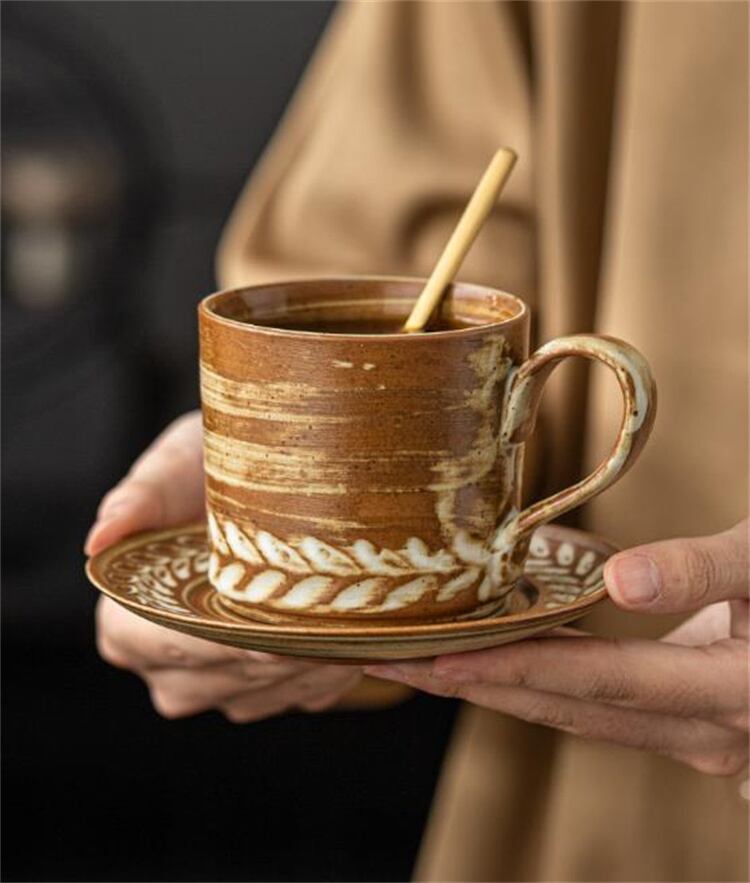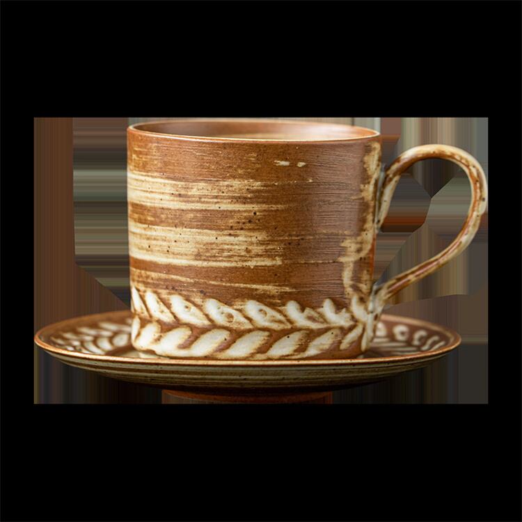 レトロな小麦模様コーヒーカップセット ヨーロッパ風デザインで家庭でのカプチーノやラテアートを楽しめる