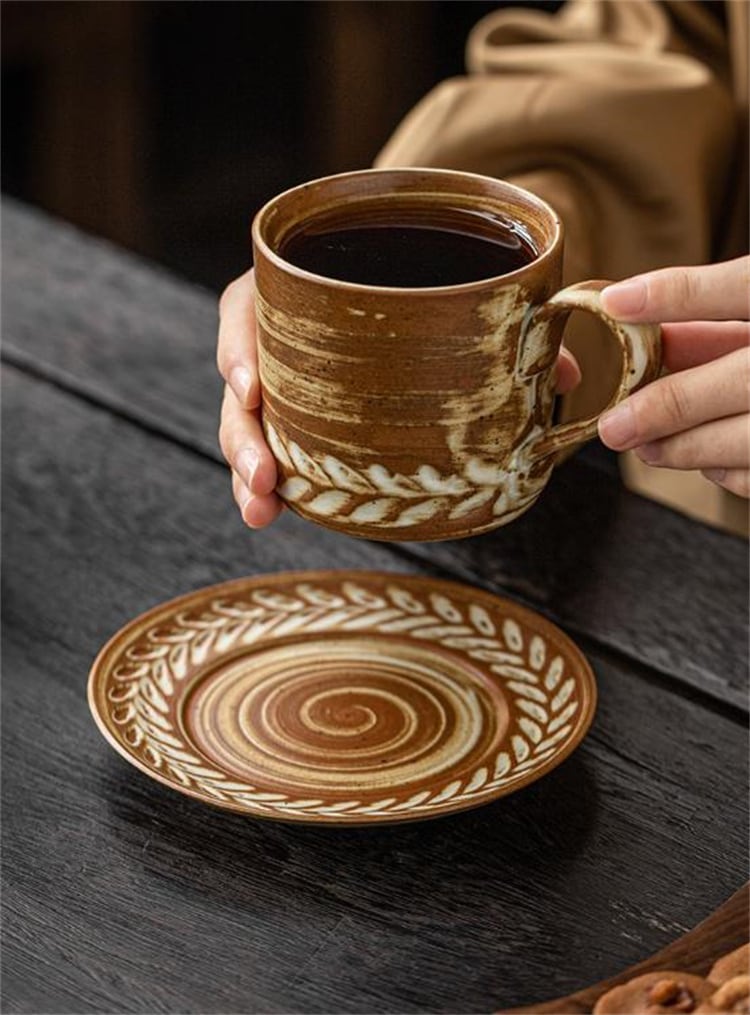 レトロな小麦模様コーヒーカップセット ヨーロッパ風デザインで家庭でのカプチーノやラテアートを楽しめる N2JY2026012612 :dodo