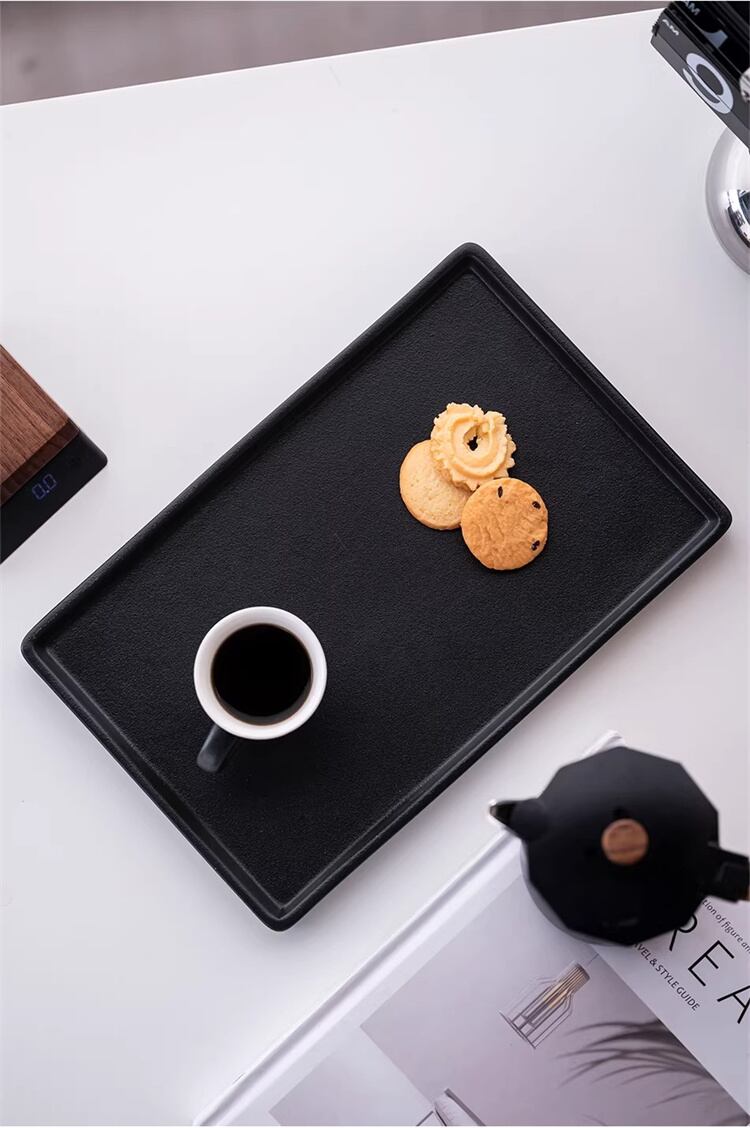 干泡き茶専用陶器トレイ 長方形で茶器をすっきり配置 表面はつやあり仕上げで水ハネも拭き取り簡単