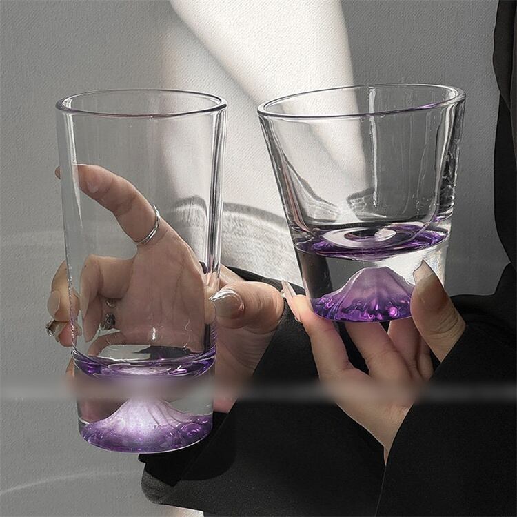 紫富士山ウイスキーグラス 雪山スタイル 毎日の水飲みやパーティー用に役立つ 250ml/350mlサイズ選択可
