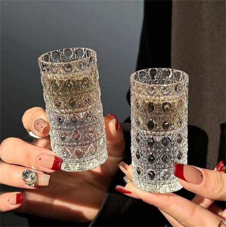 軽奢風30mlグラス 浮き彫り柄と厚みのある底脚で安定感抜群 デイリー使いから特別な夜まで