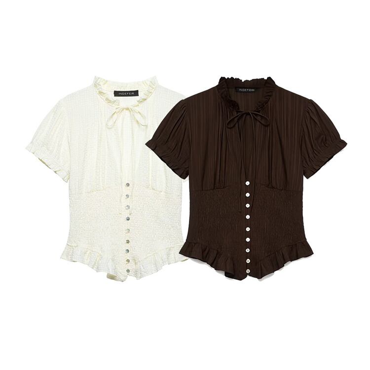 デザインリボン 欧米スタイルトップス 2026 春新作 エレガント レディース 2 カラー選択可