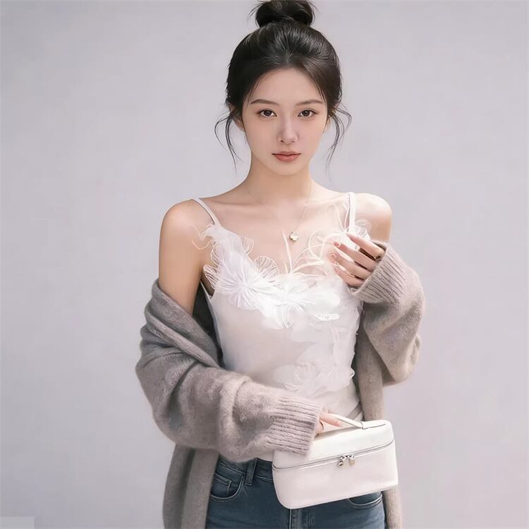 レディース 立体フラワーレースニットキャミ V ネックデザイン キュートスタイル アウター兼インナー N2JY2026032011 :dodo
