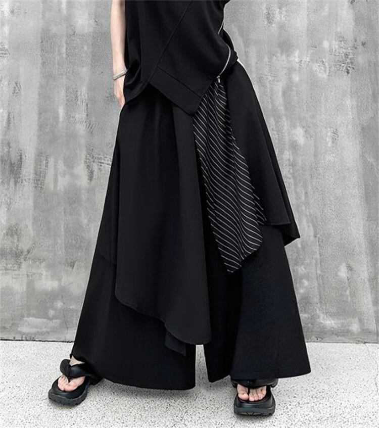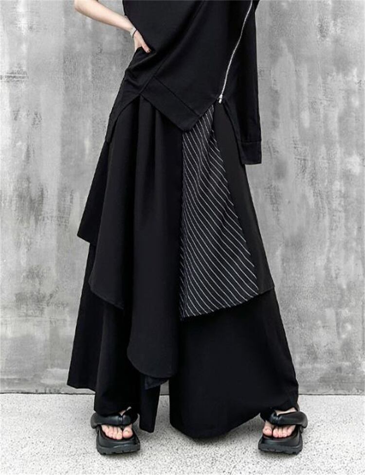 ゆったり気品カジュアル 縦縞切り替えワイドパンツ 2026春夏新作 レディース ハイウエストロングパンツ N2JY2026030907 :dodo