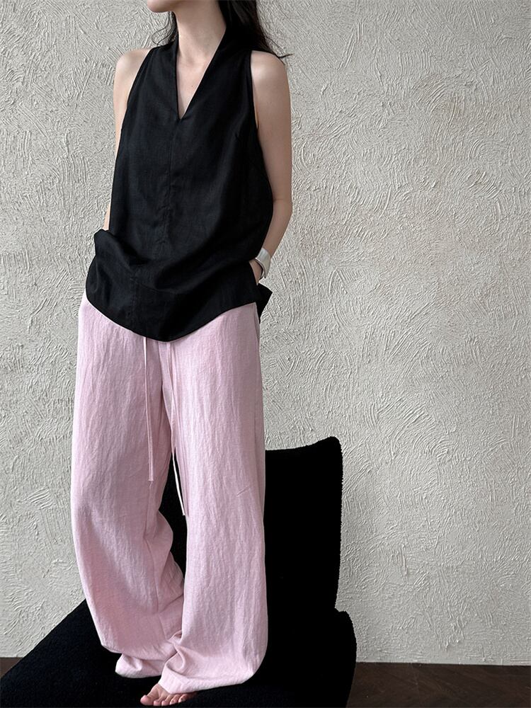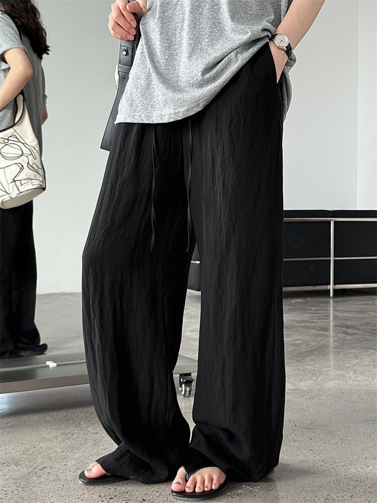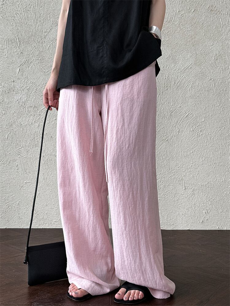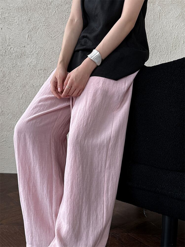 夏向け ウエストゴム リラックスストレートパンツ レディース 薄くて軽い さらっとした肌触り