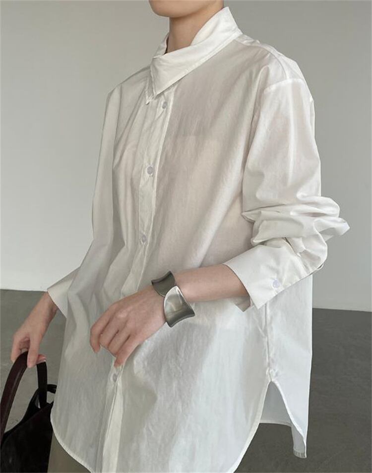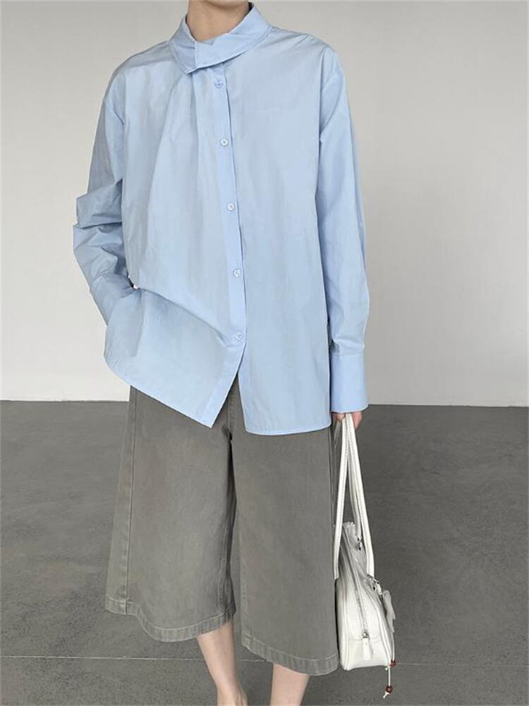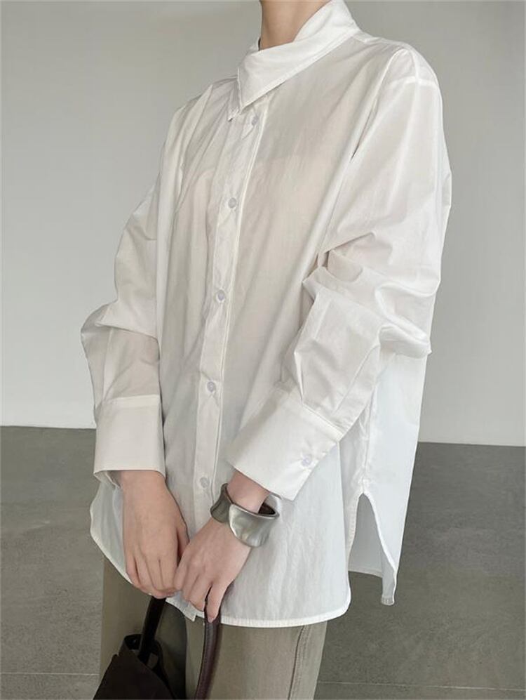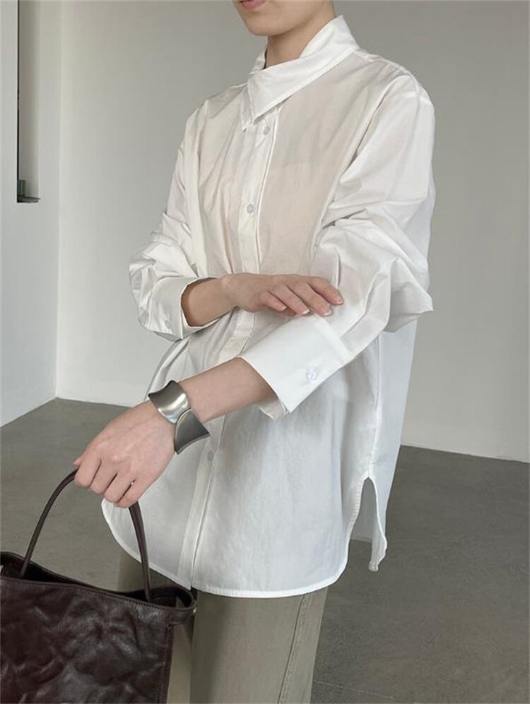 レディースシャツ シンプルでありながらこだわり デザイン性の高い変形カラー 美しいプリーツ装飾 N2JY2026030901 :dodo