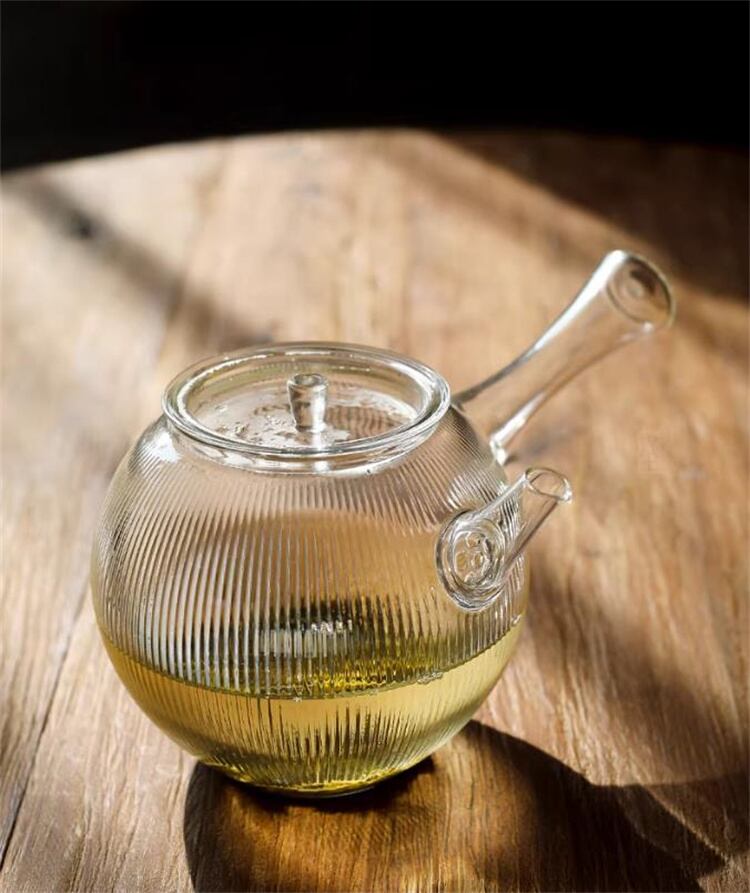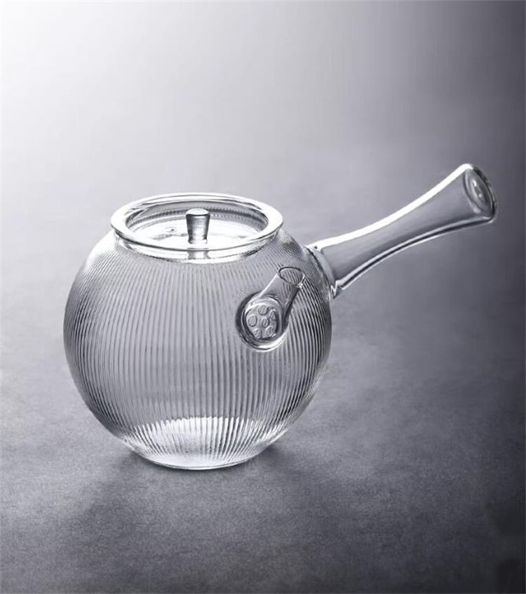 大容量でサイドハンドル付きガラス製お茶煮出し器 高温に強い湯沸かしポット 茶こし付きお茶淹れ器 N2JY2026021103 :dodo