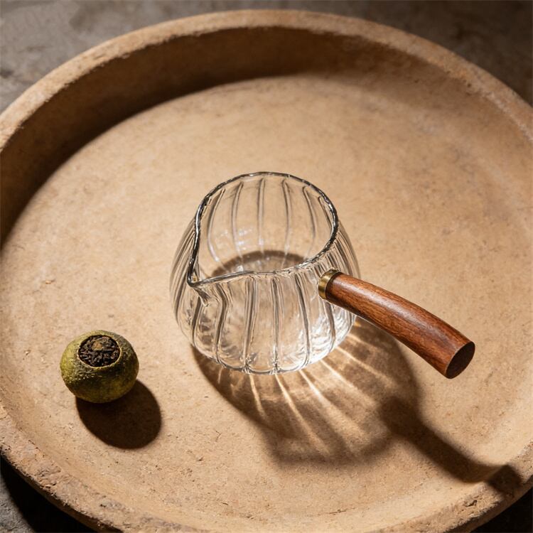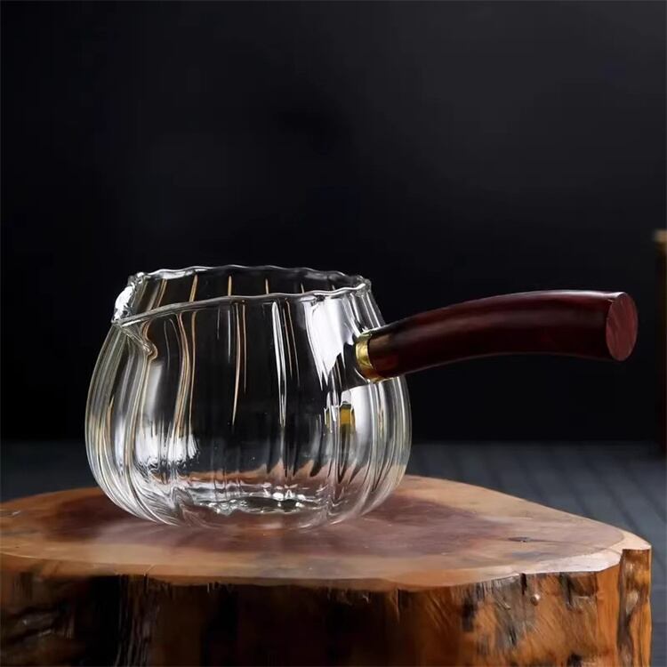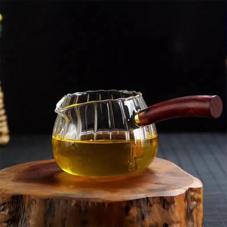 2026年新作 茶水分離可能な耐熱ガラス公正カップ サイドハンドル付き400ml 茶こし一体型デザイン