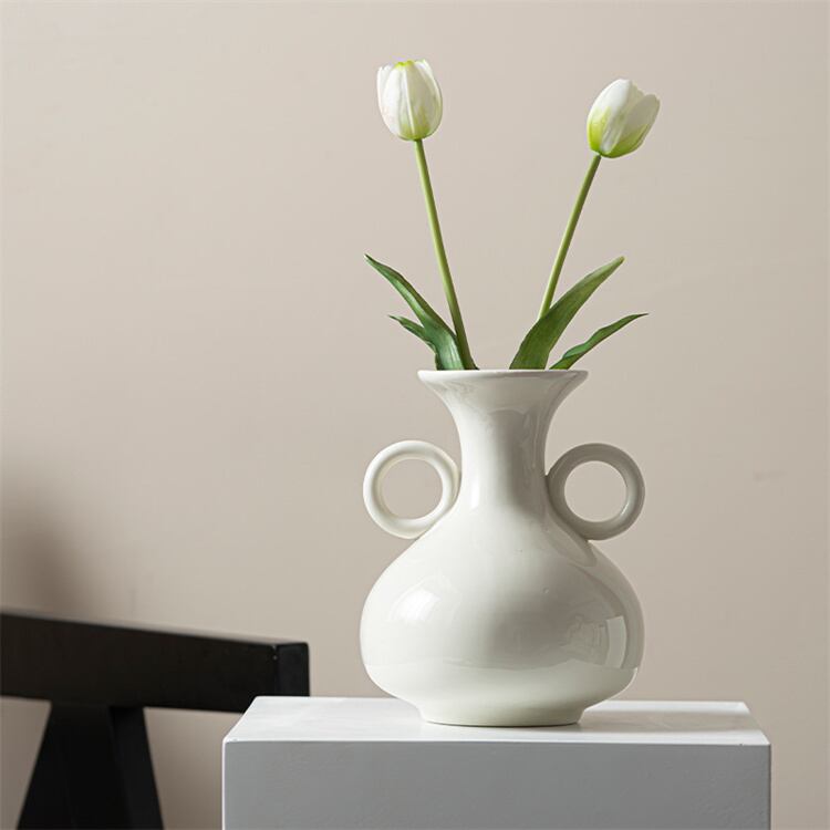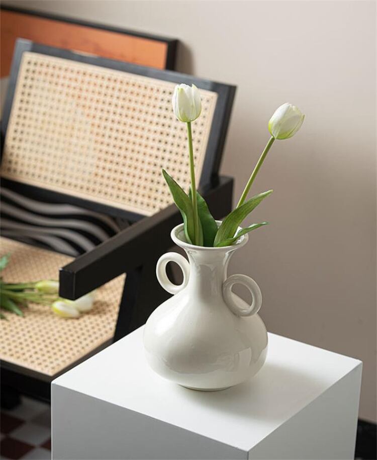 レトロテイストの両耳付きシンプルフラワーベース ミッドセンチュリーの趣があるインテリア置物 N2JY2026020215 :dodo