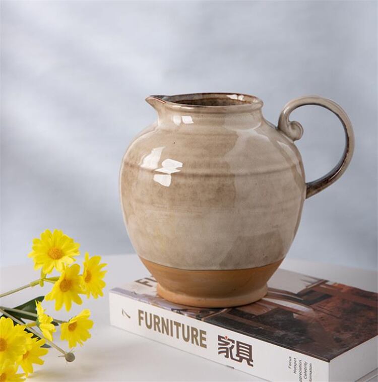 ユニークなやかんデザイン花瓶 窯変エフェクトのレトロ陶磁器アート花器