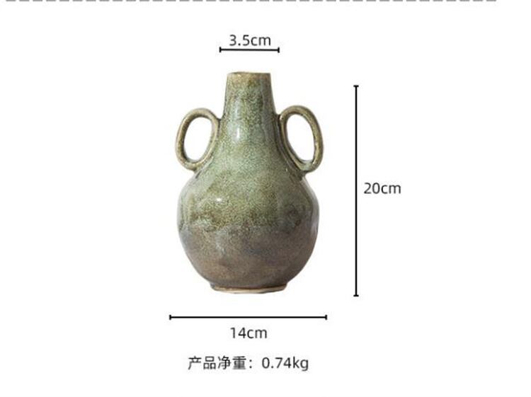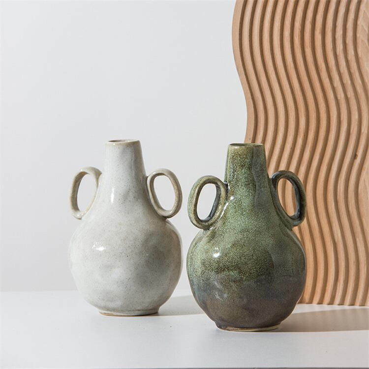 軽量ツインアーム陶器壺 リビング用北欧置物 レトロなテイストで花を楽しむ 重量0.74kg移動簡単 N2JY2026020210 :dodo