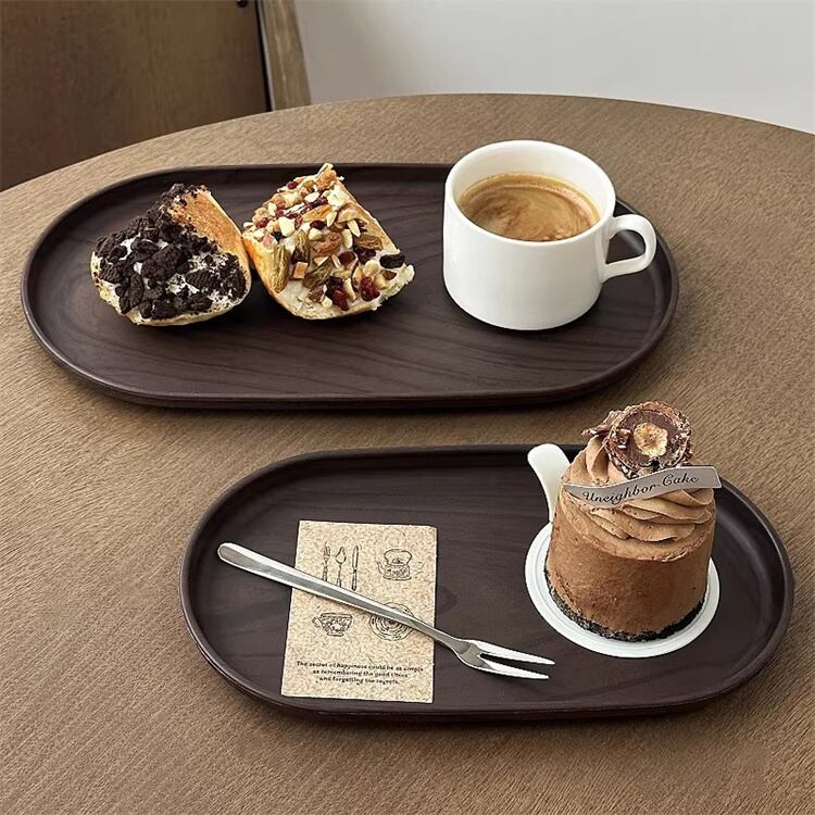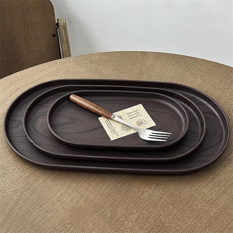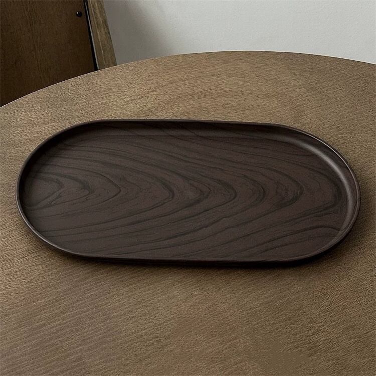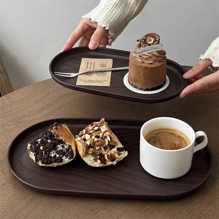 クルミ材色プラスチックトレイ3点セット 楕円形 カップスイーツ木目調収納皿 N2JY2026012624 :dodo