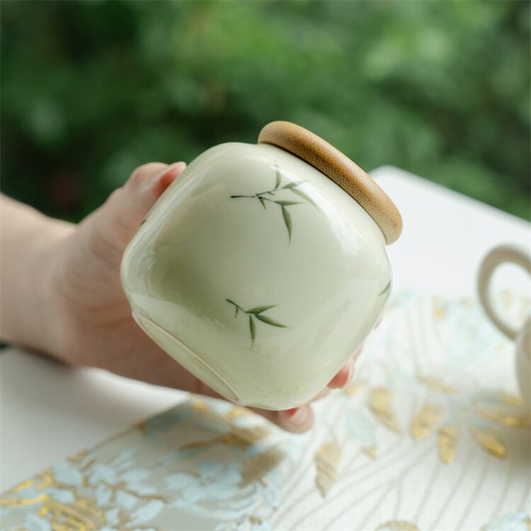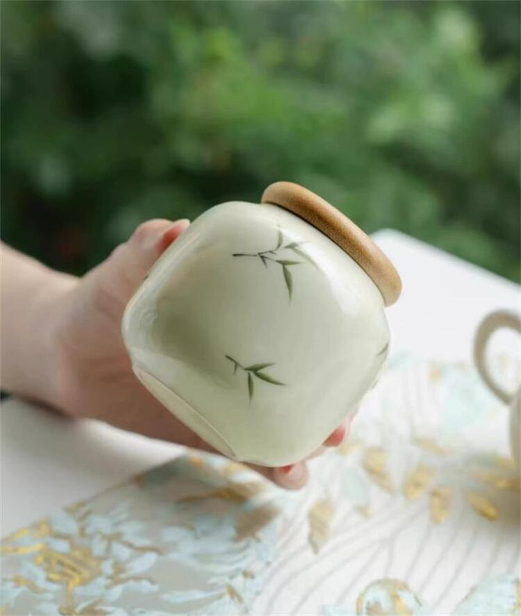 シノタケ手描き陶磁器缶 260ml 密閉湿気防止 家庭用茶葉缶収納缶ミニサイズ N2JY2026012622 :dodo