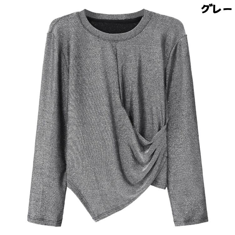2026早春 シンプルデザイン レディースTシャツ 長袖 ラウンドネック ルーズフィット 着やせ効果 2カラー N2JY2026032308 :dodo