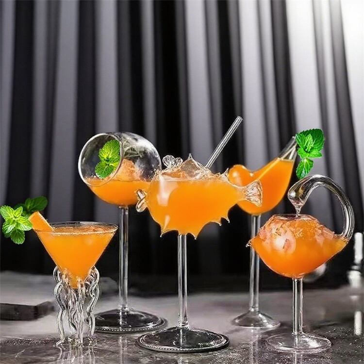 ホームバー用クリエイティブカクテルグラス 200ml ふぐ・蛸・白鳥造型 ステム付きクリスタルガラス