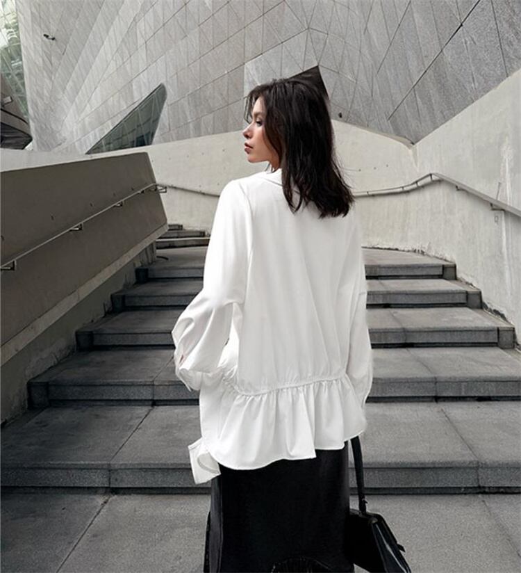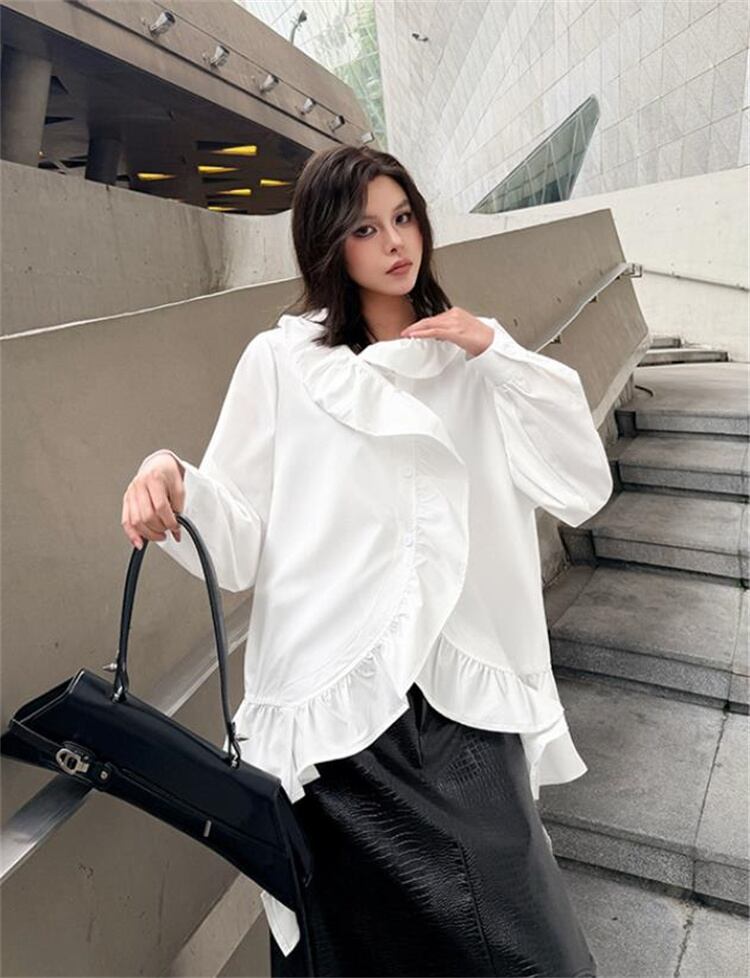 フリル 斜めボタン 不規則シャツ 春 2026 新作 ゆったり ヴィンテージ風 トップス N2JY2026041505 :dodo