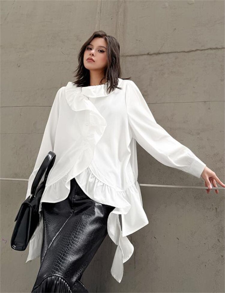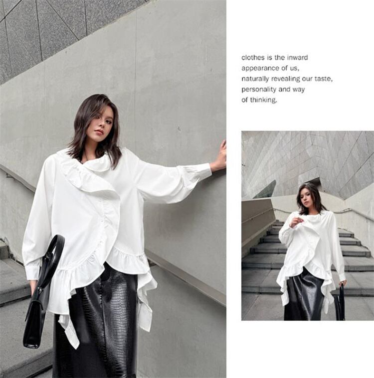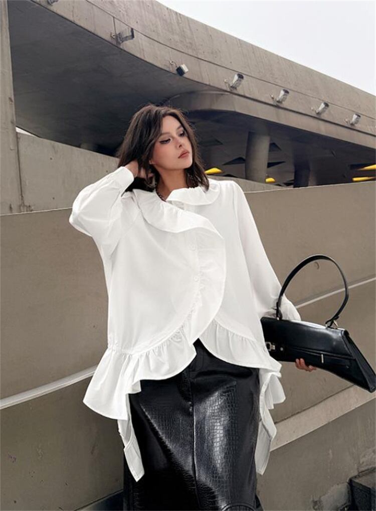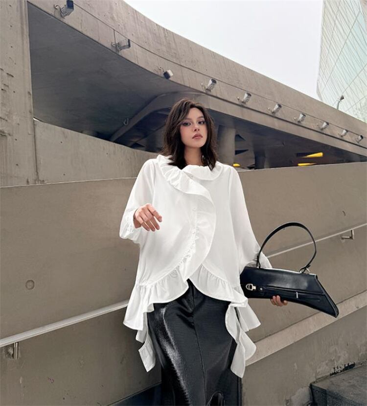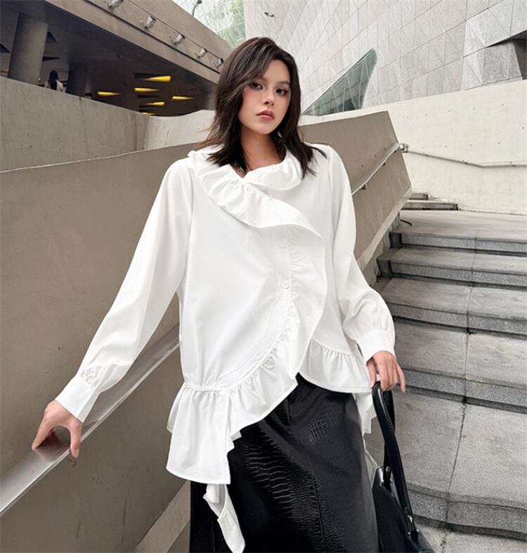 フリル 斜めボタン 不規則シャツ 春 2026 新作 ゆったり ヴィンテージ風 トップス