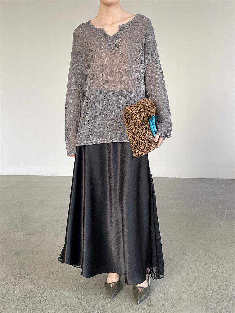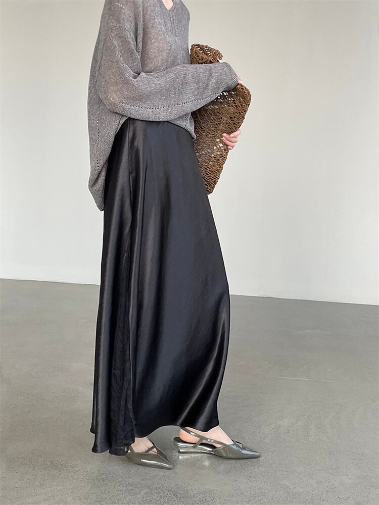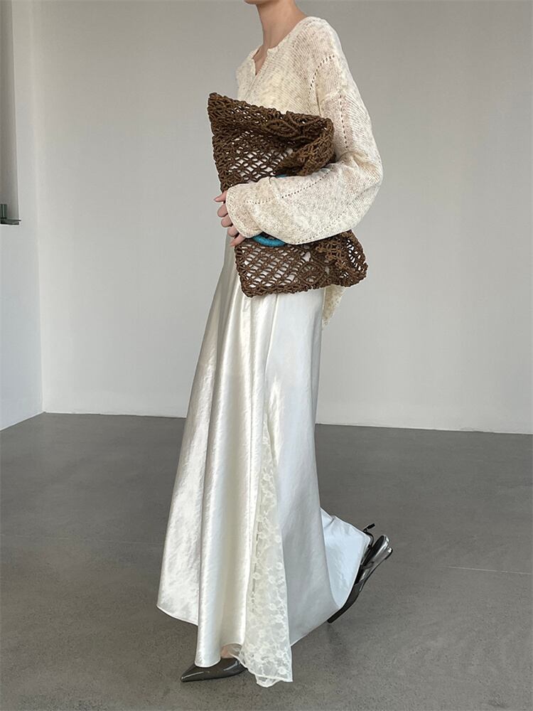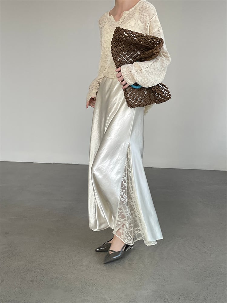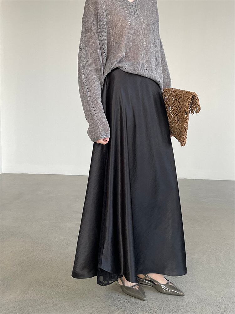 優雅サテンレーススカート 風になびくフレアシルエット 春の大人カジュアル 2色提案