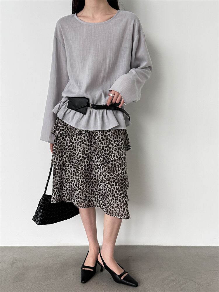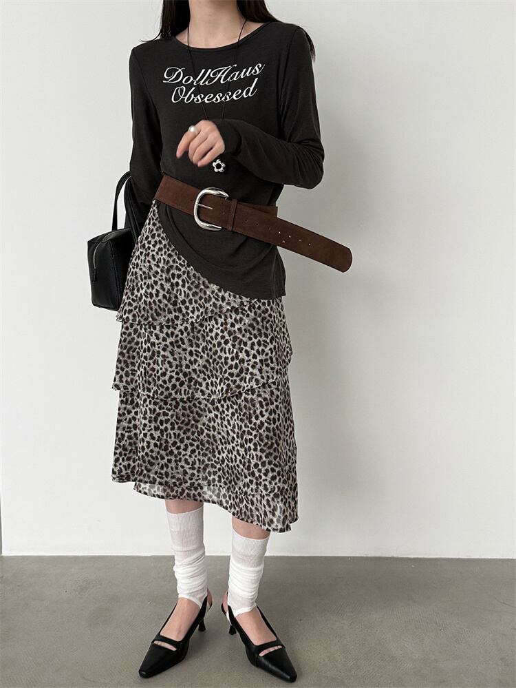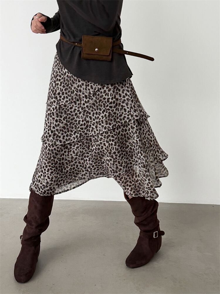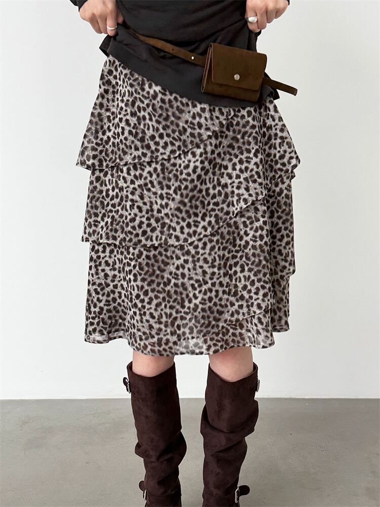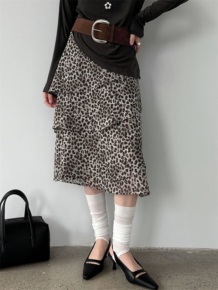 春のトレンド アシンメトリー 豹柄 チュールスカート ハイウエスト レイヤードデザイン N2JY2026041502 :dodo