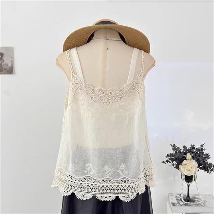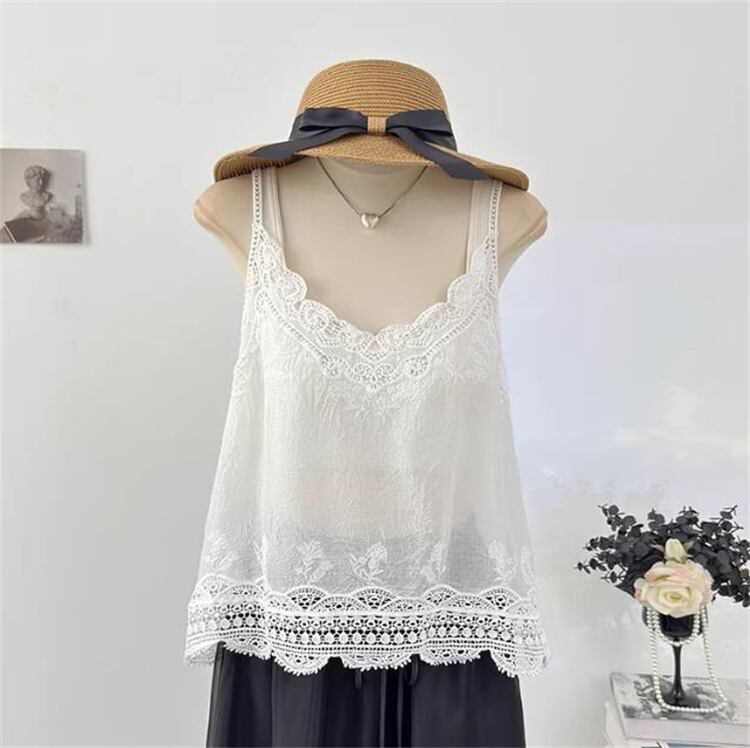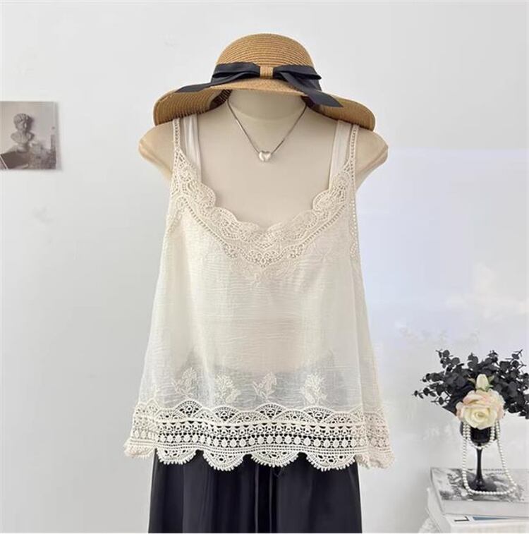 フェミニンレースキャミソール Vネックデザイン 2026春トレンドトップス 2 色