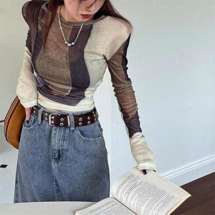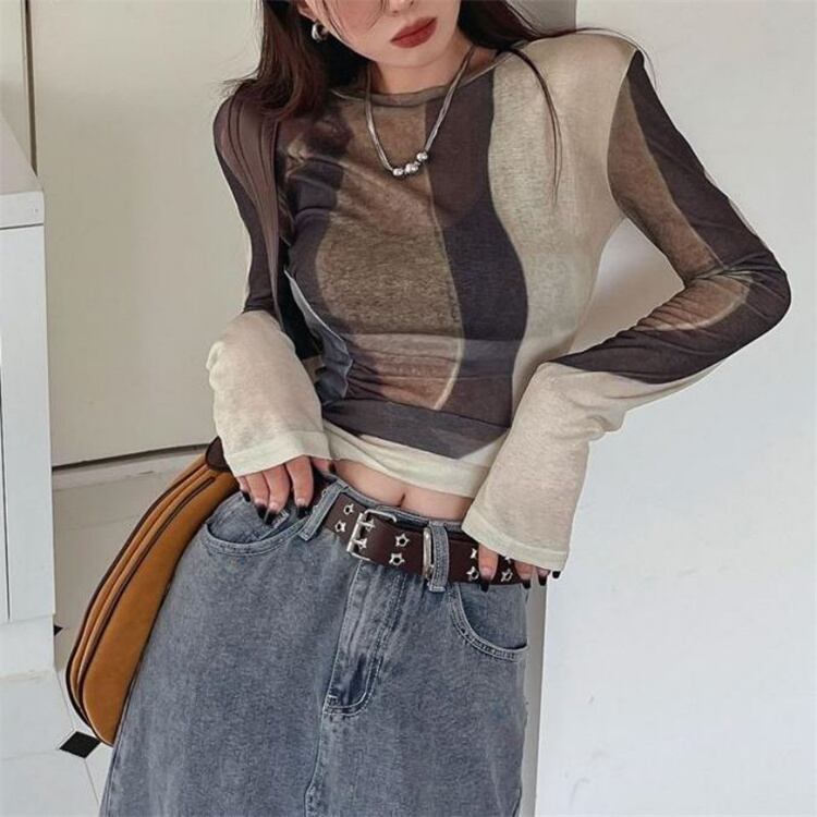 【夏のレイヤードに】透け感メッシュ長袖T グラデーションカラーで差をつける N2JY2026041309 :dodo