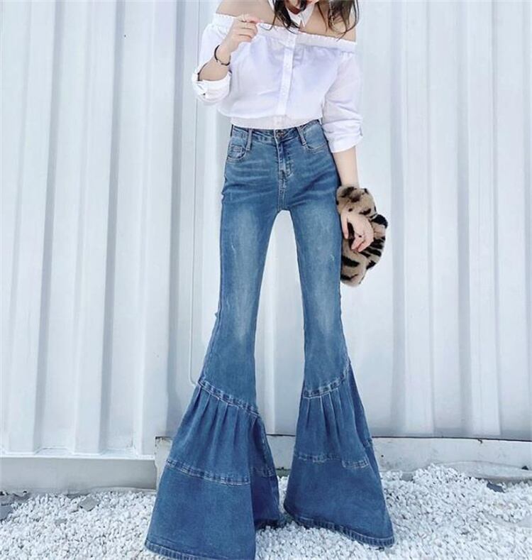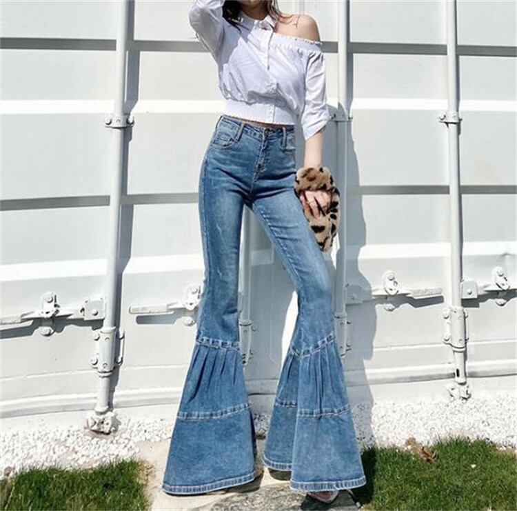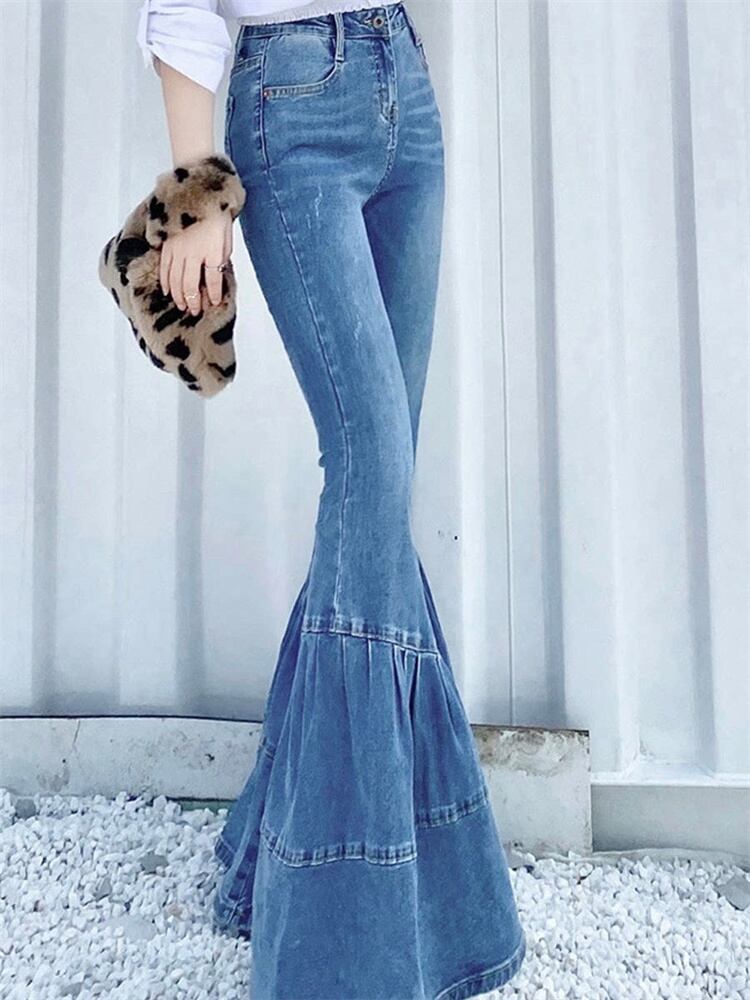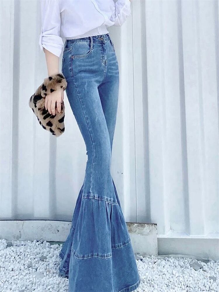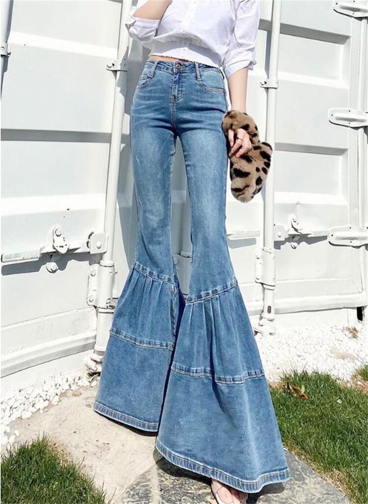 2026 夏 ハイウエスト切替 ワイドフレアデニムパンツ レトロデザイン