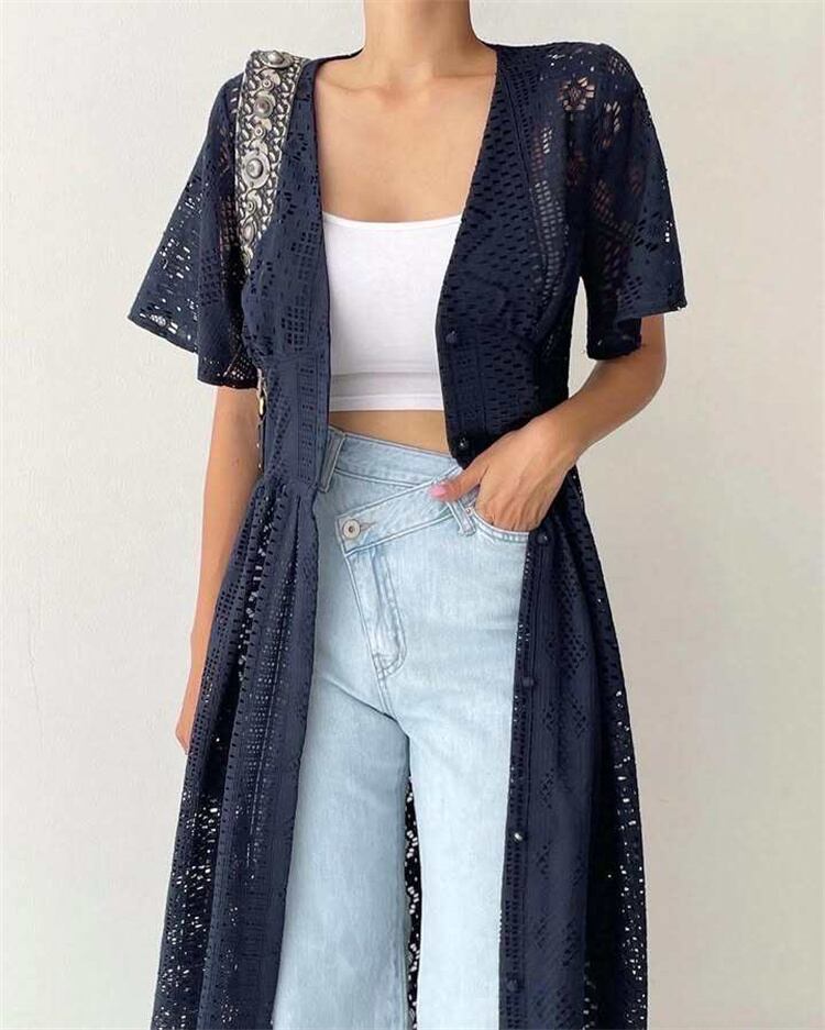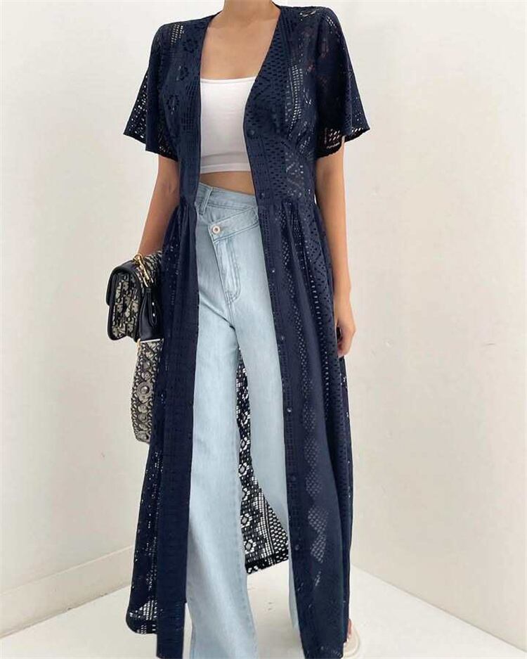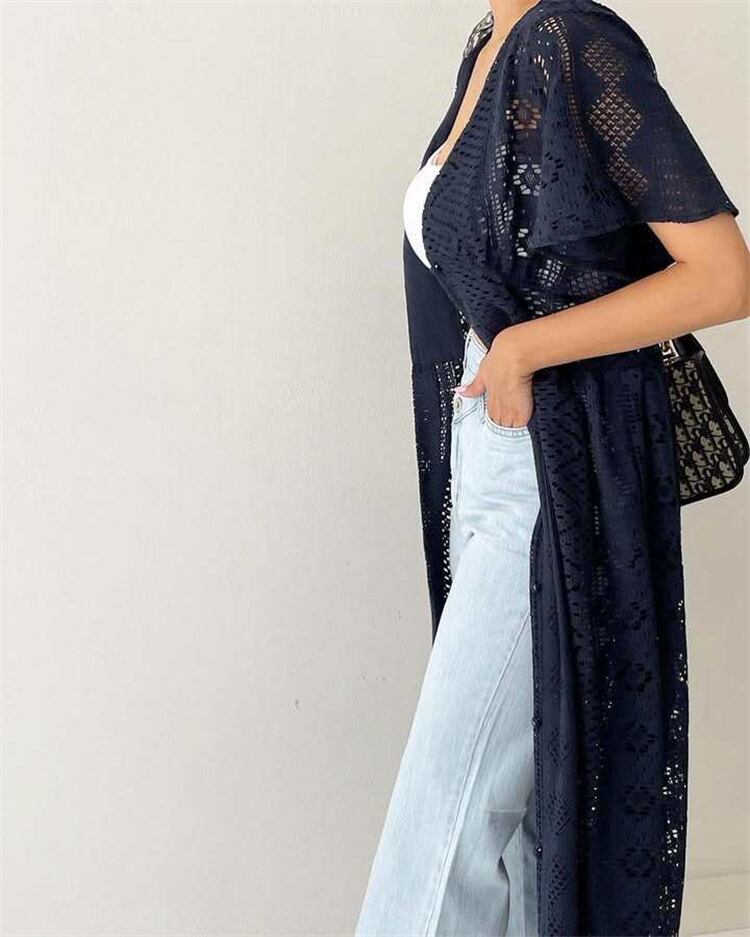 夏の定番 2026春夏 ゆったりレースワンピース 透け感クロシェ ロング丈カーディガン UVカット 2色 N2JY2026041314 :dodo