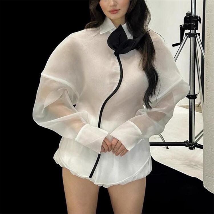 レディーストップス 2026 春新作 パフスリーブシャツ カジュアル 2 色展開 ゆったりめ N2JY2026040712 :dodo