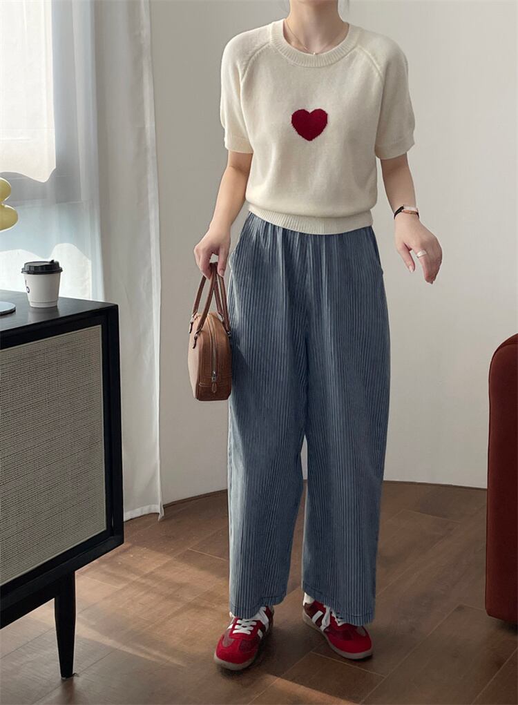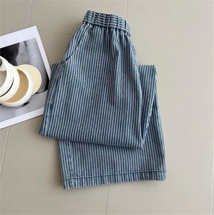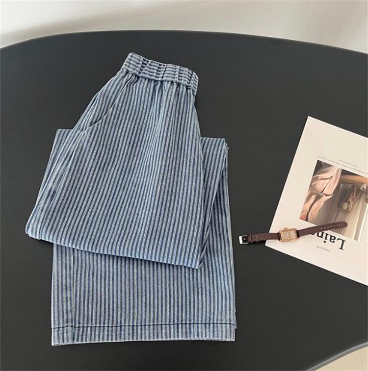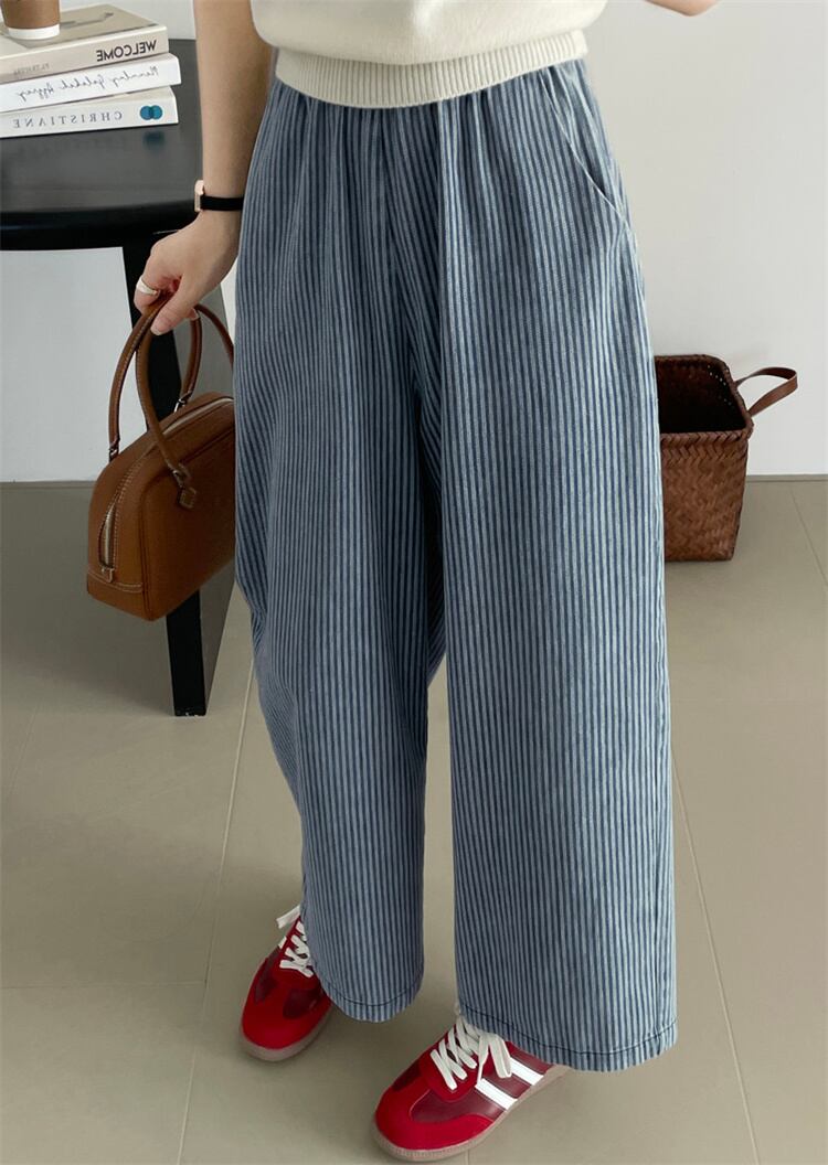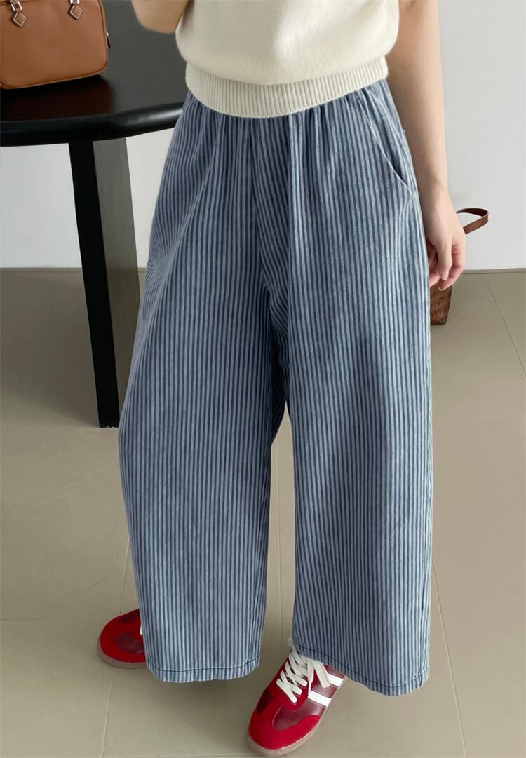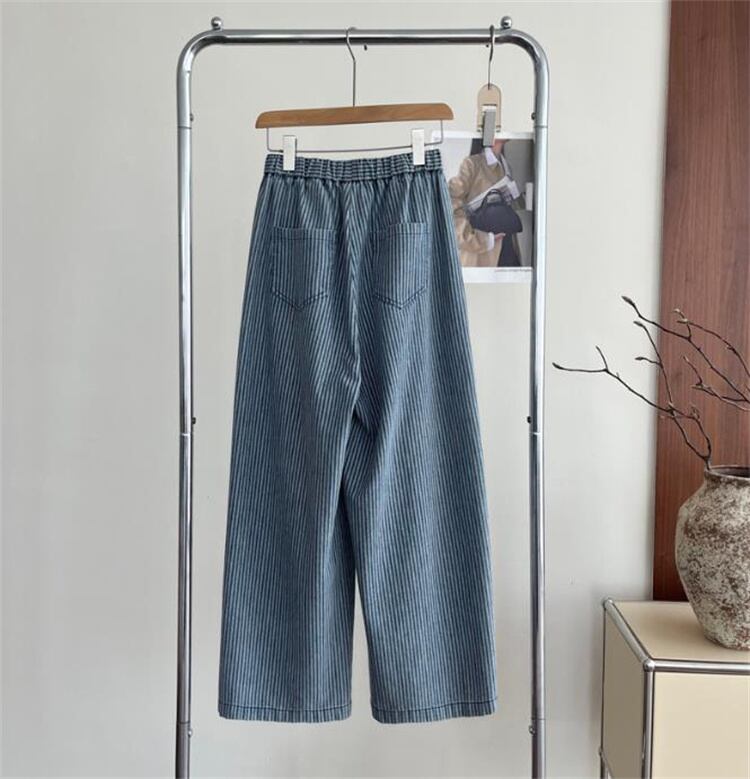 縦ストライプ ウエストゴムデニムパンツ レディース 柔らか素材 ワイドシルエット スリム見え N2JY2026040702 :dodo