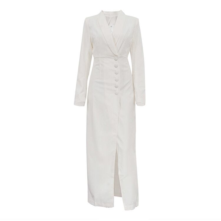 Vネック 長袖 ハイウエスト ロング丈 ワンピース パーティーで上品なスリット入り すっと伸びるシルエット N2JY2026032325 :dodo