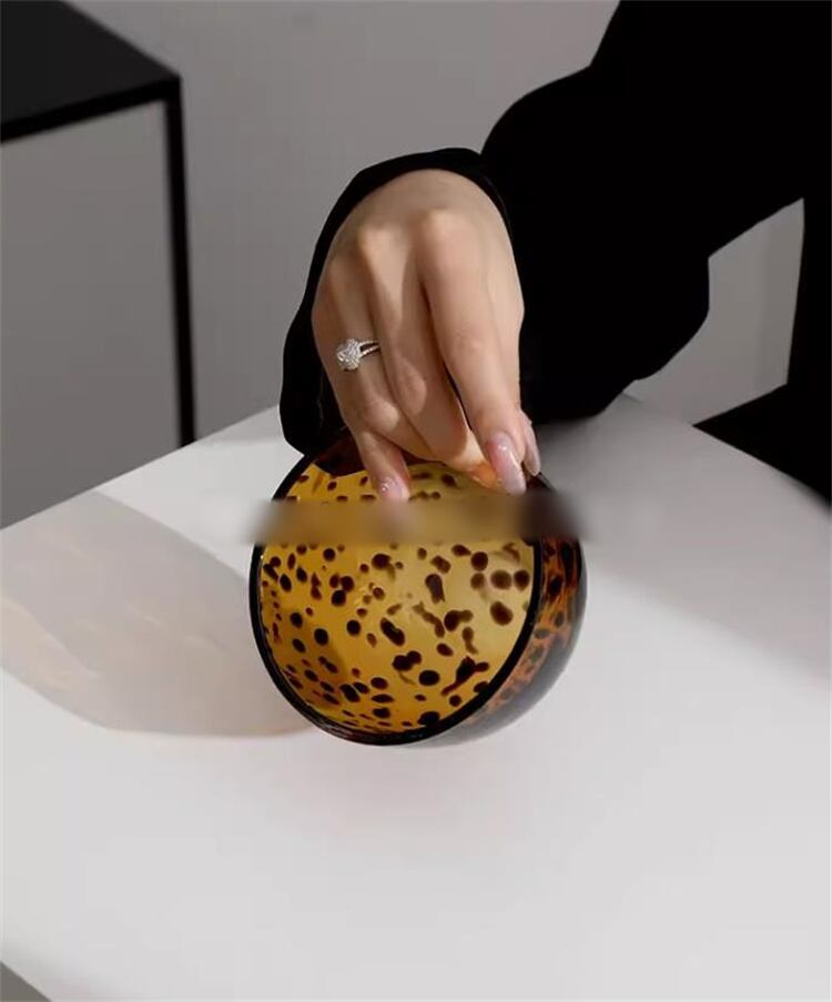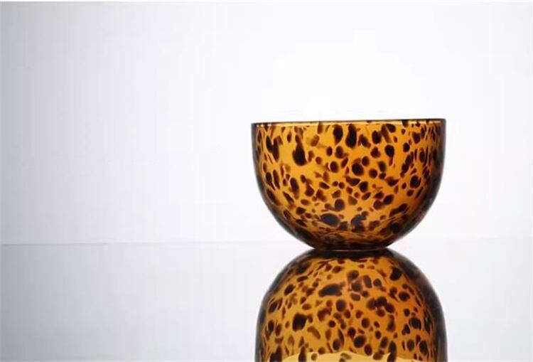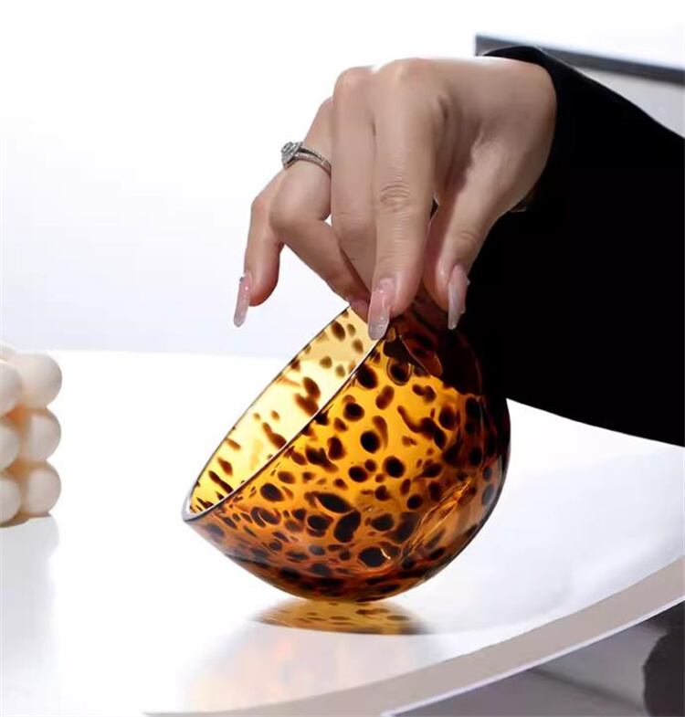 ガラス製 琥珀ヒョウ柄 デザートボウル 300ml 2026新作 自宅カフェ風 小鉢